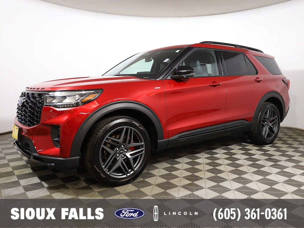Turn up the adrenaline with this CARFAX One-Owner, Certified 2025 Ford Explorer ST-Line now at Sioux Falls Ford Lincoln. Dressed in bold Red Metallic, this aggressive 4WD SUV brings head-turning style and athletic performance together in one sleek package.