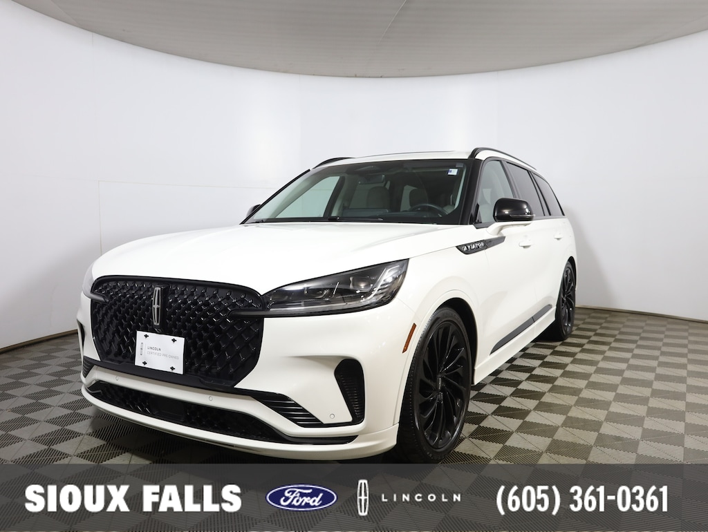 Indulge in uncompromising refinement with this CARFAX One-Owner, Certified 2025 Lincoln Aviator Reserve with the Jet Package, now showcased at Sioux Falls Ford Lincoln. Finished in elegant White Metallic, this Aviator commands attention with sleek design, bold presence, and unmistakable Lincoln sophistication.