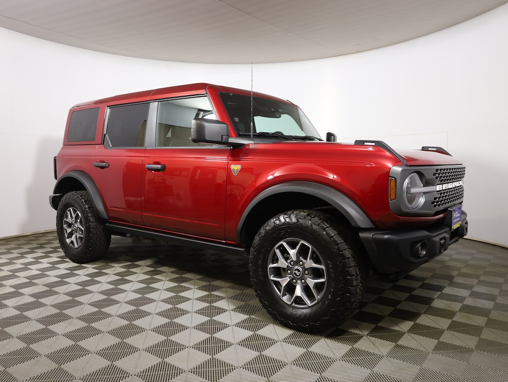 Finished in bold Ruby Red Metallic, this Bronco commands attention whether its tearing down a backroad or parked in the city. Built for true adventure, the Badlands trim is engineered to take you further featuring serious off-road capability and rugged durability that's ready to tackle mud, rocks, snow, and everything in between.